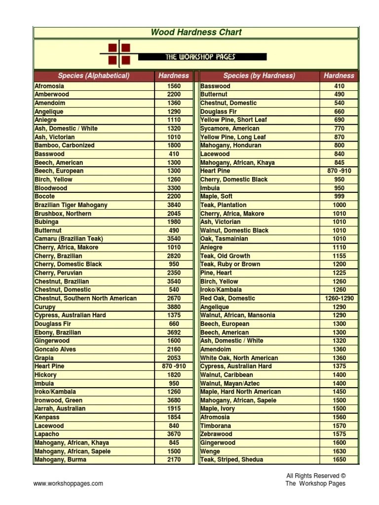 Wood Hardness Chart PDF