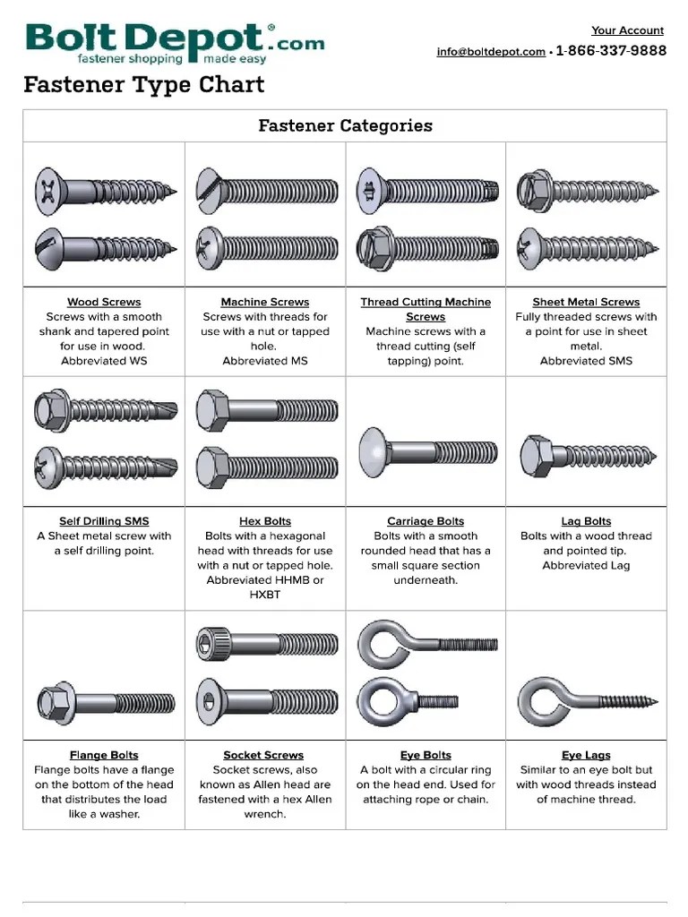 Provides dimensions for imperial and metric allen wrenches; Web fastener type chart (screws and bolt guide) chart showing all common types of screws, bolts, nuts, hooks etc. Web home , bolt (fastener), fastener, nut (hardware), ogee. Printable fastener tools series fastener categories wood. Web for those times when you can't identify a fastener by name, we have created a printable.