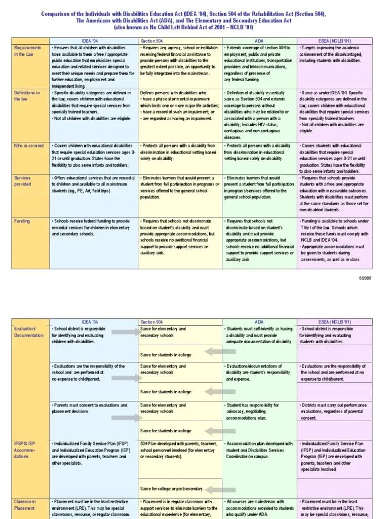 IDEA, Section 504, ADA Comparison Chart School Psychology, Psychology
